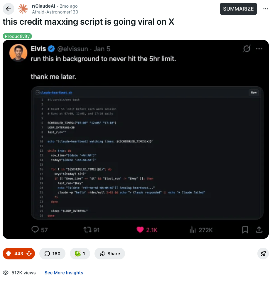 I posted a script on X that helps people with their Claude Code limits. It went viral — solid engagement, 340k impressions. (I already wrote about the psychology of this previously on how I made 5 viral tweets in a single day)